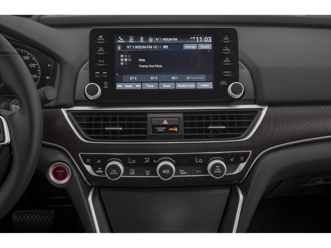 - Radio: 450-Watt HD Premium Audio System -inc: 10 speakers including subwoofer, 8" display audio w/high-resolution electrostatic touch-screen, knobs and hard keys for primary controls and customizable feature settings, Bluetooth HandsFreeLink, Bluetooth streaming audio, SMS text message function, Radio Data System (RDS), Speed-Sensitive Volume Compensation (SVC), HondaLink, wireless Apple CarPlay integration, wireless Android Auto integration, 1 2.5-amp USB smartphone/audio interface port in front console, 1 2.5-amp USB charging port in front console, 2 2nd-row 2.5-amp USB charging ports, Honda Satellite-Linked Navigation System w/voice recognition and Honda HD digital traffic, HondaLink subscription services, Wi-Fi hotspot capability, illuminated steering wheel-mounted controls, body-colored fin-type roof-mounted antenna and SiriusXM, SiriusXM requires a subscription after any trial period, If you decide to continue your SiriusXM service at the end of your trial subscription, the plan you choose will automatically renew and bill at then-current rates until you call SiriusXM at 1-866-635-2349 to cancel, See our Customer Agreement for complete terms at www.siriusxm.com, Fees and programming subject to change, Available in the 48 contiguous United States and D.C, SiriusXM and all related marks and logos are trademarks of SiriusXM Radio Inc, The Honda Satellite-Linked Navigation System functions in the United States (not including territories, except Puerto Rico) and Canada, Honda HD Digital Traffic service only available in the United States, except Alaska, Please see your Honda dealer for details, HondaLink Subscription Services come w/complimentary trials of Security for one year and a Remote/Concierge trial for three months, Enrollment is required to access the Remote/Concierge trial and to access certain features of Security, At the end of each trial period, purchase of a subscription is required to continue the respective services