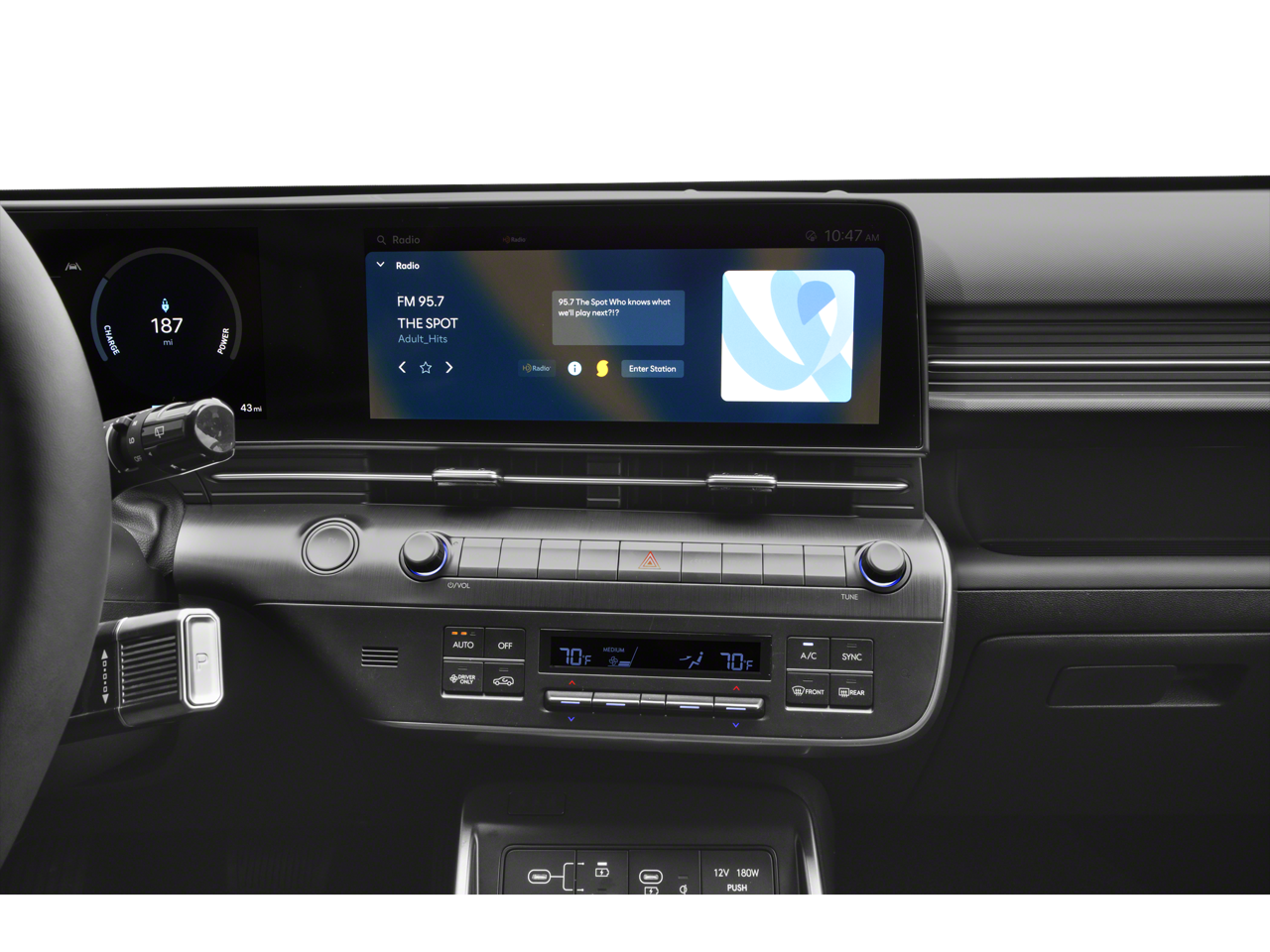- Radio: AM/FM/HD Radio/SiriusXM -inc: 12.3" navigation (ccNC), Bose premium audio w/8 speakers, wireless Android Auto and Apple CarPlay, USB connectivity, dynamic voice recognition, BlueLink connected car system, WiFi hotspot, OTA software updates and shark-fin antenna