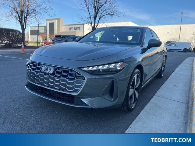 The all new 2025 Audi A5 quattro in Chronos Gray metallic with a black interior combines turbocharged 2.0 liter power, seven speed S tronic transmission and Audi quattro all wheel drive for confident performance in all conditions. The Premium Plus package adds adaptive cruise assist, head up display, park assist plus with top view camera, dynamic interaction light, taillight animation, USB power delivery and a heated steering wheel with hands on detection for safety and convenience. The Warm Weather package includes ventilated front sport seats and manual rear side window sunshades for extra comfort. LED headlights plus with digital daytime running lights, LED interior lighting pro and a panoramic glass roof with variable light control enhance visibility and ambiance, while the 19 inch five arm aero bi color wheels complete the sporty look. Inside you get leather seating, natural wood inlays, power adjustable heated front seats with lumbar and driver memory, power adjustable steering column, three zone climate control, wireless charging, auto dimming mirrors, illuminated door sills, Audi advanced key, integrated toll module, SiriusXM with 360L, traffic sign recognition and Audi drive select. The MMI touch display, Audi virtual cockpit plus, MMI Navigation plus, Bang and Olufsen 3D sound system, Audi connect and Audi smartphone interface support Apple CarPlay and Android Auto so compatible navigation, music, calls and messages appear on the screen using your smartphone. Safety features include 11 airbags, Antilock Braking System with brake assist, Electronic Stabilization Control, tire pressure monitoring, front and rear parking sensors with 360 camera, blind spot monitoring, active front assist with automatic emergency braking, lane departure warning, Audi side assist, rear cross traffic assist, exit warning, power child safety locks and LATCH anchors.